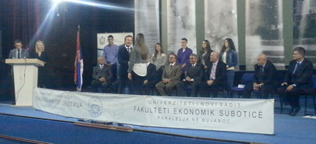 At the ceremony marking the start of the new academic year, freshmen were welcomed by Prof. Zoran Masic, PhD, Secretary of State in the Ministry of Education, Science and Technological Development, Prof. Nenad Vunjak, PhD, Dean of the Faculty of Economics in Subotica, Prof. Miroslav Veskovic, PhD, Rector of the University of Novi Sad, Peter Burkhard, Head of the OSCE Mission to Serbia, Nagip Arifi, Mayor of Bujanovac, Prof. Arber Celiku, PhD,  Vice Rector of the University of Tetovo, Galip Beciri, President of the Albanian National Council, and Graeme Tyndall, Manager of the United Nations Office for Project Services (UNOPS ) and the European Progress Program.