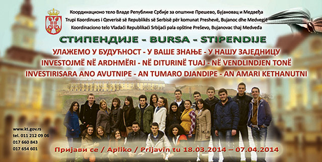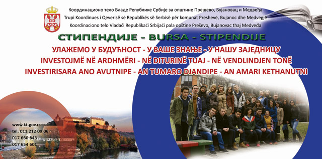 In accordance with its set priorities and in view of its support to an improved quality of education in the territory of the municipalities of Presevo and Bujanovac, the Coordination Body’s Office announces an open competition for granting student scholarships to young people that have residence in the territory of the municipalities of Presevo and Bujanovac.