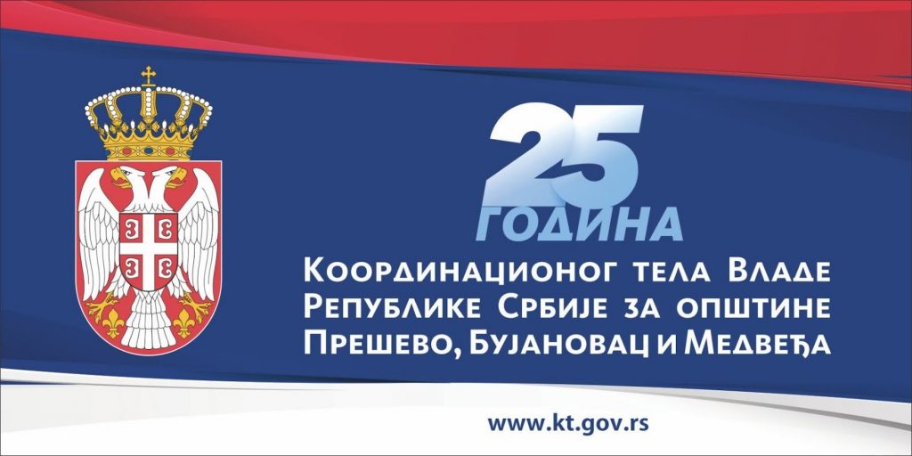 У свечаној сали Специјалне болнице за рехабилитацију „Бујановац“ у Бујановачкој Бањи, у уторак 16. децембра 2025. године, у 13 часова, биће одржано свечано обележавање двадесет пет година од оснивања Координационог тела Владе Републике Србије за општине Прешево, Бујановац и Медвеђа.