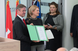 Povodom otvaranja zgrade koju će koristiti fakultet u Bujanovcu, svečanom uručenju diploma studentima prisustvovali i šef delegacije EU u Srbiji Majkl Davenport, šef Misije OEBS-a u Srbiji Peter Burkhart i ambasador Švajcarske Žan Danijel Ruh.