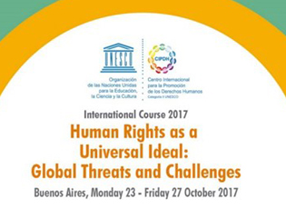 Први Међународни курсу на тему „Људска права као универзални идеал: претње и глобални изазовиˮ ће се одржати у периоду од 23. до 27. октобра у Буенос Аиресу, Аргентина.