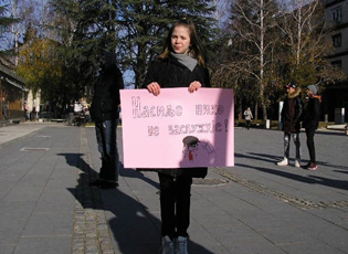 Pjesëmarrësit e aksionit në Sheshin Karagjorgje kanë ndarë kalimtarëve broshura me porosi kundër dhunës.