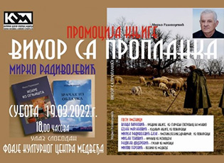 Medvegjë – Beograd – Lexuesit do të kenë mundësinë të njihen me librin e ri të shkrimtarit vendas Mirko Radivojeviq "Vihor sa propllanka" një darkë letrare që do të mbahet në Qendrën Kulturore të Medvegjës, më 19 mars, me fillim nga ora 18:00.