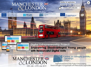 Qendra për Politikat e Bashkëpunimin dhe Zhvillimit (CRPS) Ju fton të aplikoni për Projektin e Ndërmarrësisë Digjitale: “Digital Entrepreneurship Project: Empoëering Disadvantaged Young People ëith Resourceful Digital Skills” ,që do të zhvillohet në Mançester, Angli, nga 18 deri më 27 korrik 2019 .