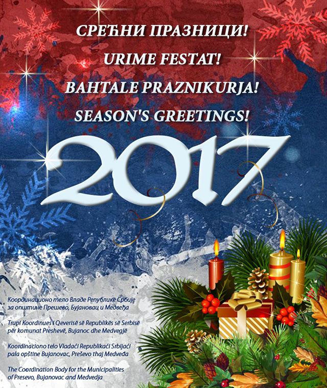 Zoran Stankoviq, kryetari i Trupit Koordinues për komunat Preshevë, Bujanoc dhe Medvegjë, të gjithë banorëve të këtyre komunave ua ka ururar Vitin e Ri, duke uruar shëndet të mirë, avansim personal dhe profesional dhe sukses.