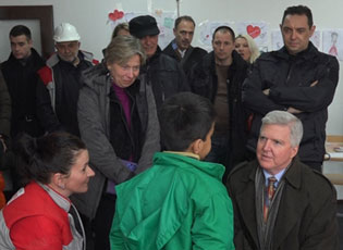 Preshevë – Ministri i punës, punësimit dhe çështjeve sociale dhe veterane, njëherit edhe kryetar i Grupit për zgjidhjen e problemit të rrjedhave të përziera emigruese, Alleksandar Vulin dhe ambasadori i SHBA-së në Serbi, Kajll Skot, kanë vizituar Qendrën për Pranim të Emigrantëve në Preshevë.