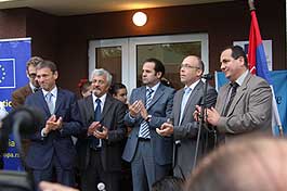 Председник Координационог тела министар Милан Марковић, шеф делегације ЕУ у Србији Венсан Дежер, министар за рад и социјалну политику Расим Љајић и комесар за избеглице Републике Србије Владимир Цуцић јуче су у Медвеђи отворили зграду за социјално становање и уручили уговоре и кључеве корисничким породицама.