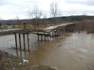 Наиме, вода је поткопала носеће стубове, па је већ оштећен мост сада и преполовљен и дефинитивно неупотребљив.